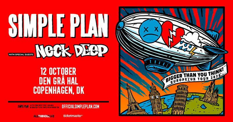Simple Plan er klar til at vælte Danmark Pop-punk-stjernerne Simple Plan gæster København som en del af deres kommende Bigger Than You Think! Tour. Koncerten bliver en sjælden chance for herboende fans til at opleve bandets energiske liveshow på tæt hold, når de indtager Den Grå Hal sammen med special guests Neck Deep 12. oktober….
